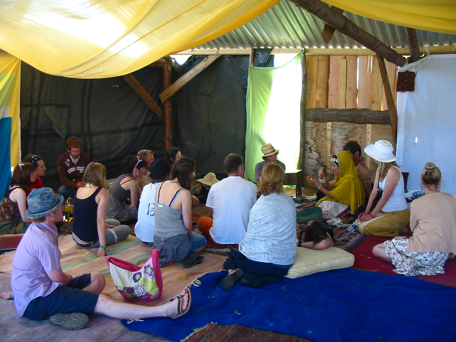 What is the story? That’s the key question. The story is what you keep and want to pass on. The story you can tell to a circle of people, or write down because you care. The rest is transience. What remained from Sunrise was the fire, the feeling of being part of a crew that converged and did stuff together. Head, heart and hands knowledge that you can’t get from books. The first two days were hot and beautiful and then on the last day the storm came. The wind howled and shook the tents. I sat with Mike in the children’s activities area among a pile of rain-soaked mats and drank coffee gratefully from a tin mug, as the Village crew began to chop wood and light the stoves. Rocket stove, camp fire, earth oven. That’s when you remember what really matters: shelter, warmth, food, company, and most of all warmth.